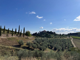 Trasa se jmenuje Vino del Strada (cesta vína) a nabízí ochutnávku z měst i vinic, a vše, co k ní patří: Castelnuovo Berardenga - Gaiole - Radda - Panzano. Grandiózní cestu zakončujeme jak nijak než v samotném Greve in Chianti. Dnes celkem 70 km, z toho 1250 m výškových nahoru. Jsem unavená, ale ohromená.